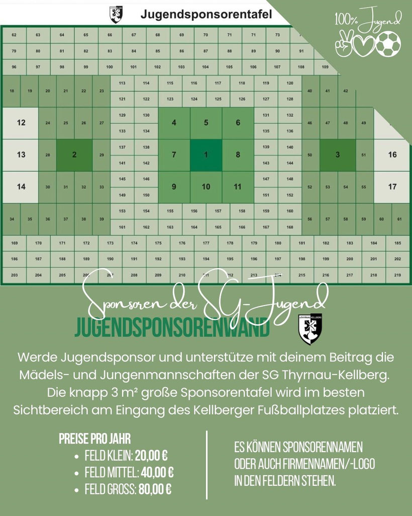 Wenn ihr euch einen Platz auf unserer Jugendsponsorentafel sichern wollt, könnt ihr euch mit Christian Friedl oder Tobias Jakob in Verbindung setzen.
